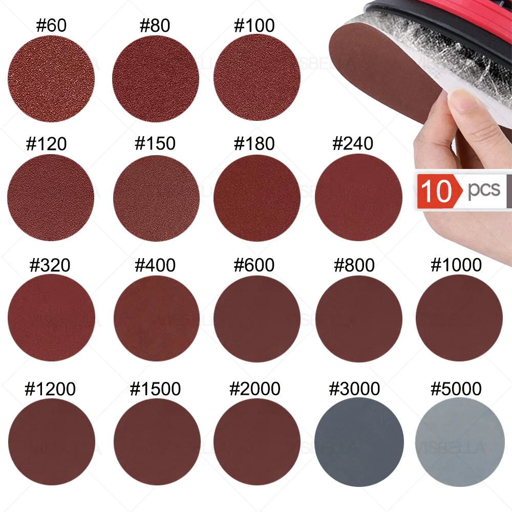 10 шт наждачная бумага круглой формы шлифовальные диски самоклеющиеся абразивные инструменты дерево металл полировка колеса автомобиля набор 23 дюйма зернистости 60-5000