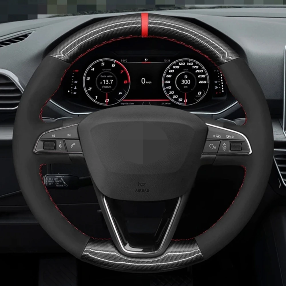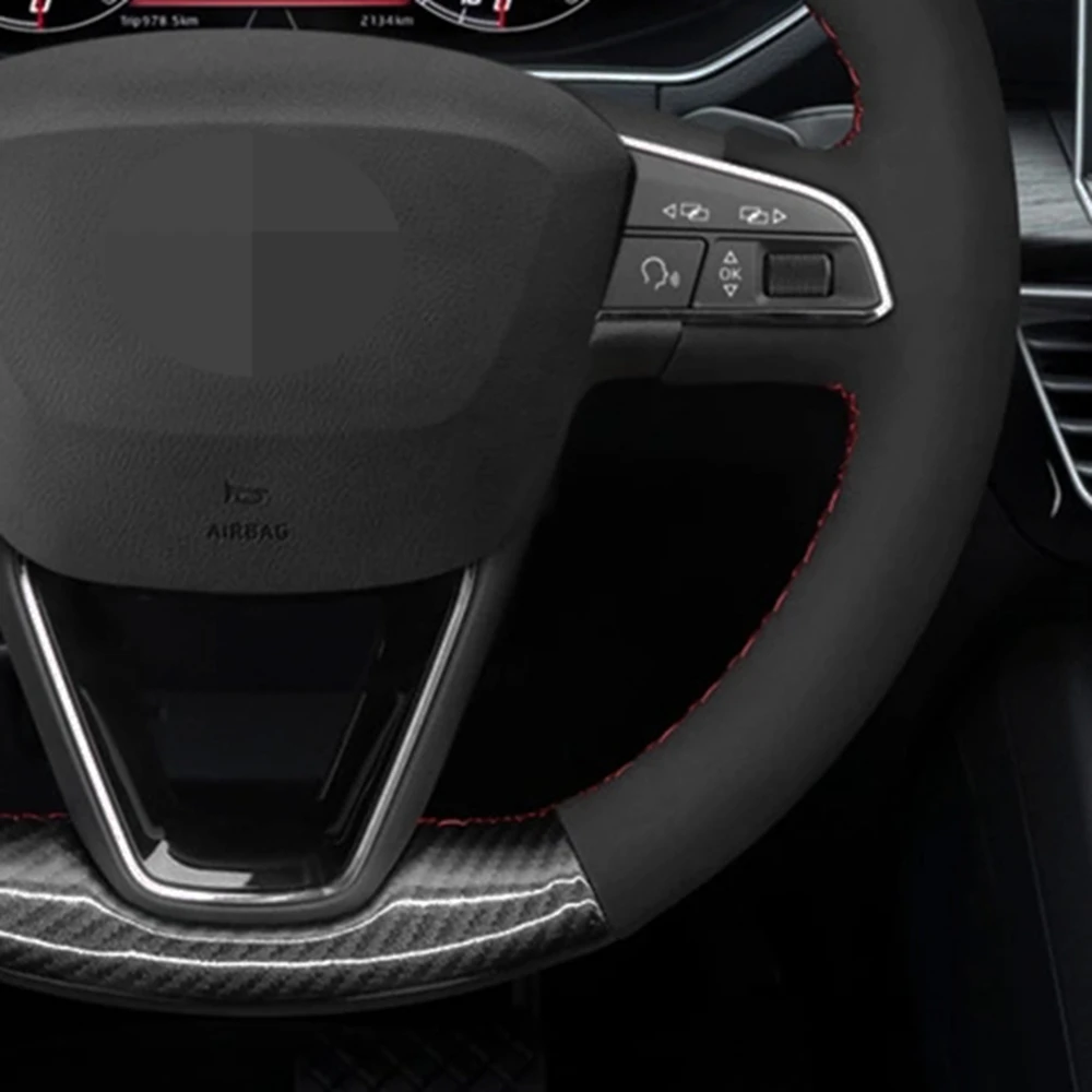 Чехол рулевого колеса автомобиля Нескользящая черная замша из углеродного волокна для Seat Leon 5F Mk3 2013-2020 Ibiza 6J Tarraco Arona Ateca Alhambra