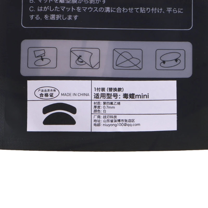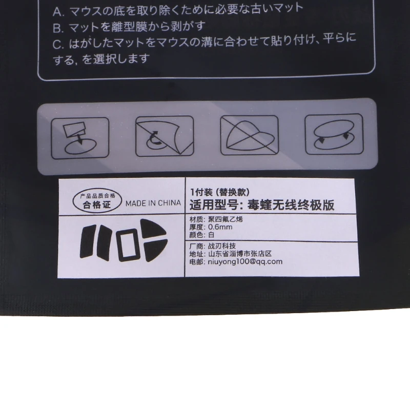 Этот продукт является заменяемой ногой мыши. После удаления оригинальной наклейки для ног мыши очистите нижнюю часть корпуса спиртовым хлопком, который прилагается в посылка, а затем вставьте Новые ножки мыши.Сняв прозрачную защитную пленку на ногах мыши, тщательно выровняйте паз для ног на нижней части корпуса мыши, затем нанесите небольшое давление на ногу.Не Приклеивайте и не отклеивайте наклейки на стопу.