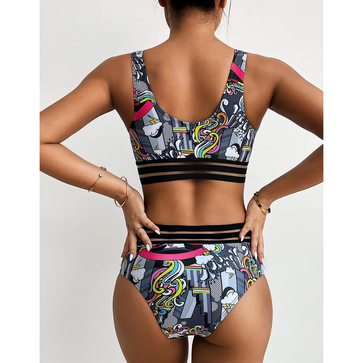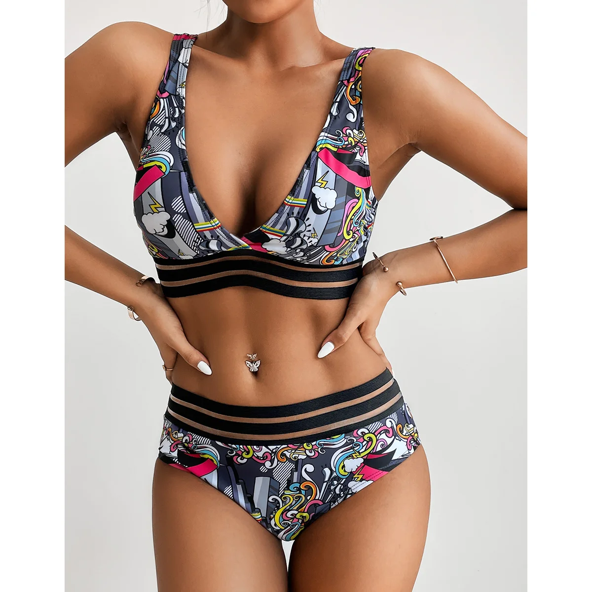 Комплект бикини женский с высокой талией, купальный костюм с принто...