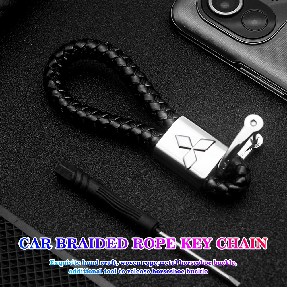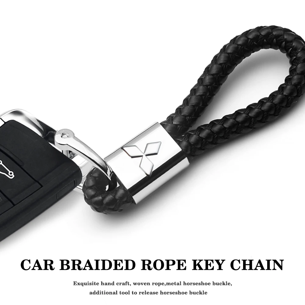 Милый металлический автомобильный брелок для ключей, 2 шт., плетеный кожаный брелок для ключей для Mitsubishi Asx Outlander Xl 3 Lancer Pajero 4 l200