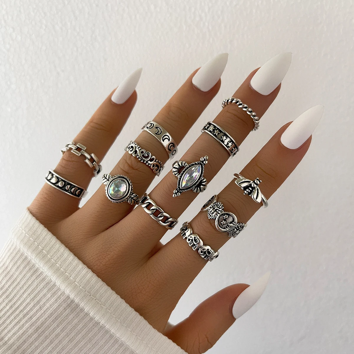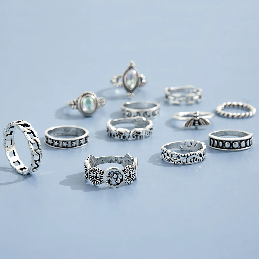 12 шт. винтажные геометрические кольца Aprilwell для женщин в стиле бохо со звездой с кристаллами 2021 модные Готические свадебные кольца в стиле Kpop набор модных ювелирных изделий