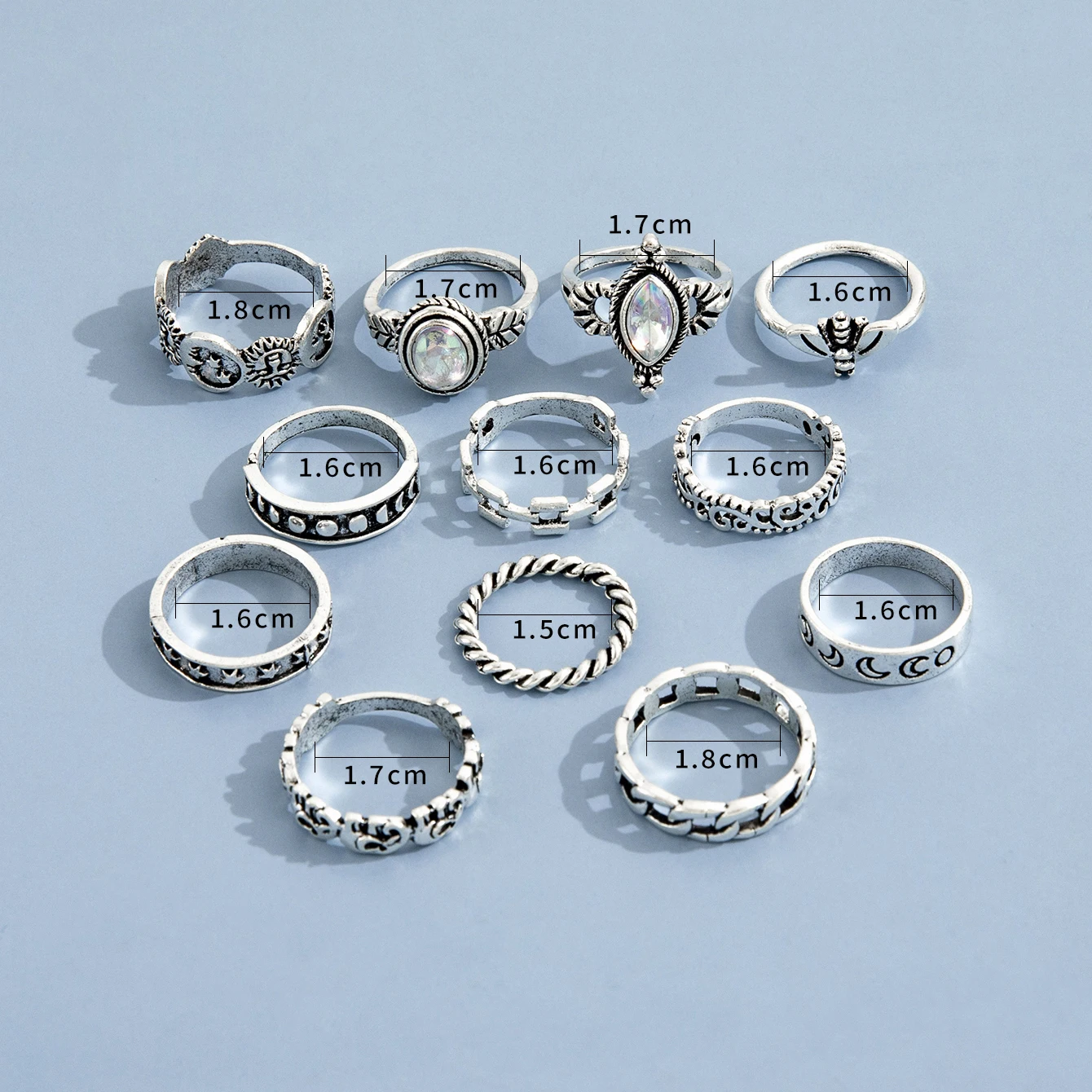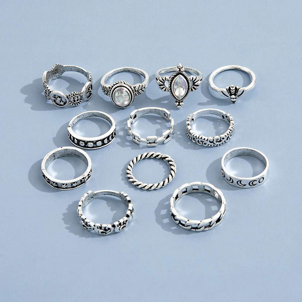 Sindlan 12 шт. винтажные серебряные кольца с кристаллами для женщин...