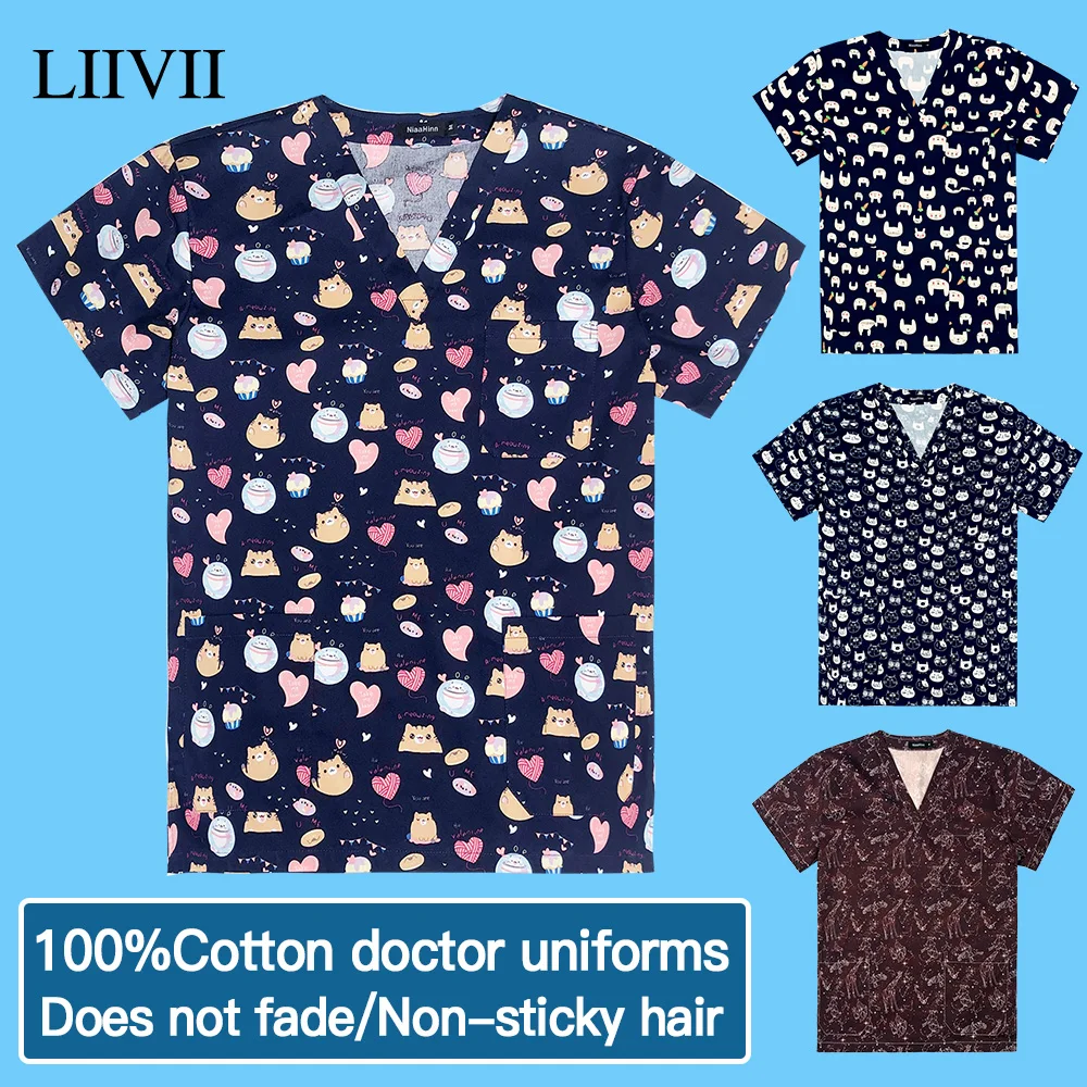 Одежда для хирургии с принтом животных, хлопковая медицинская одежд...