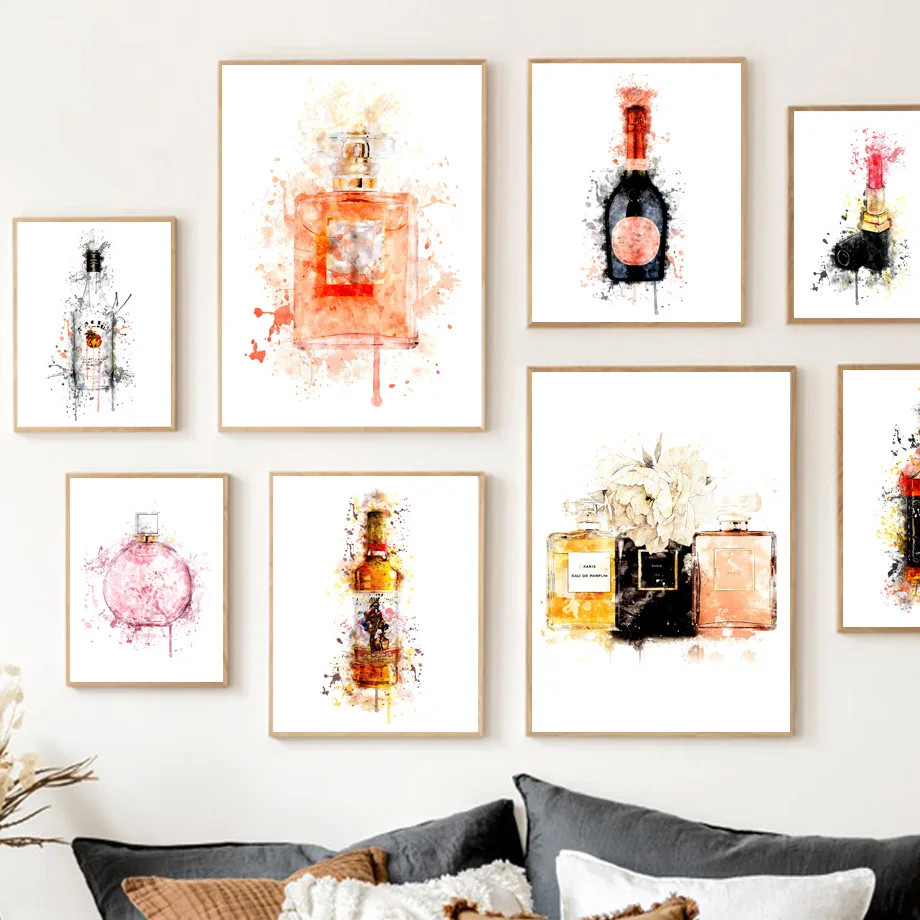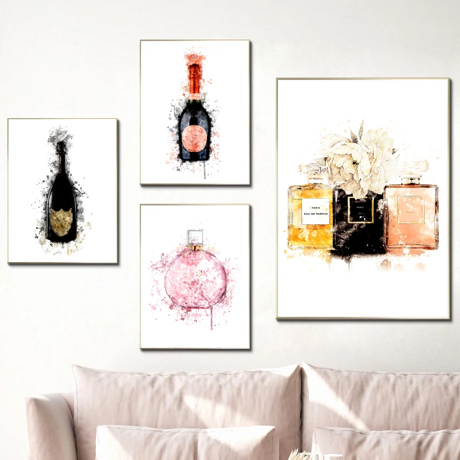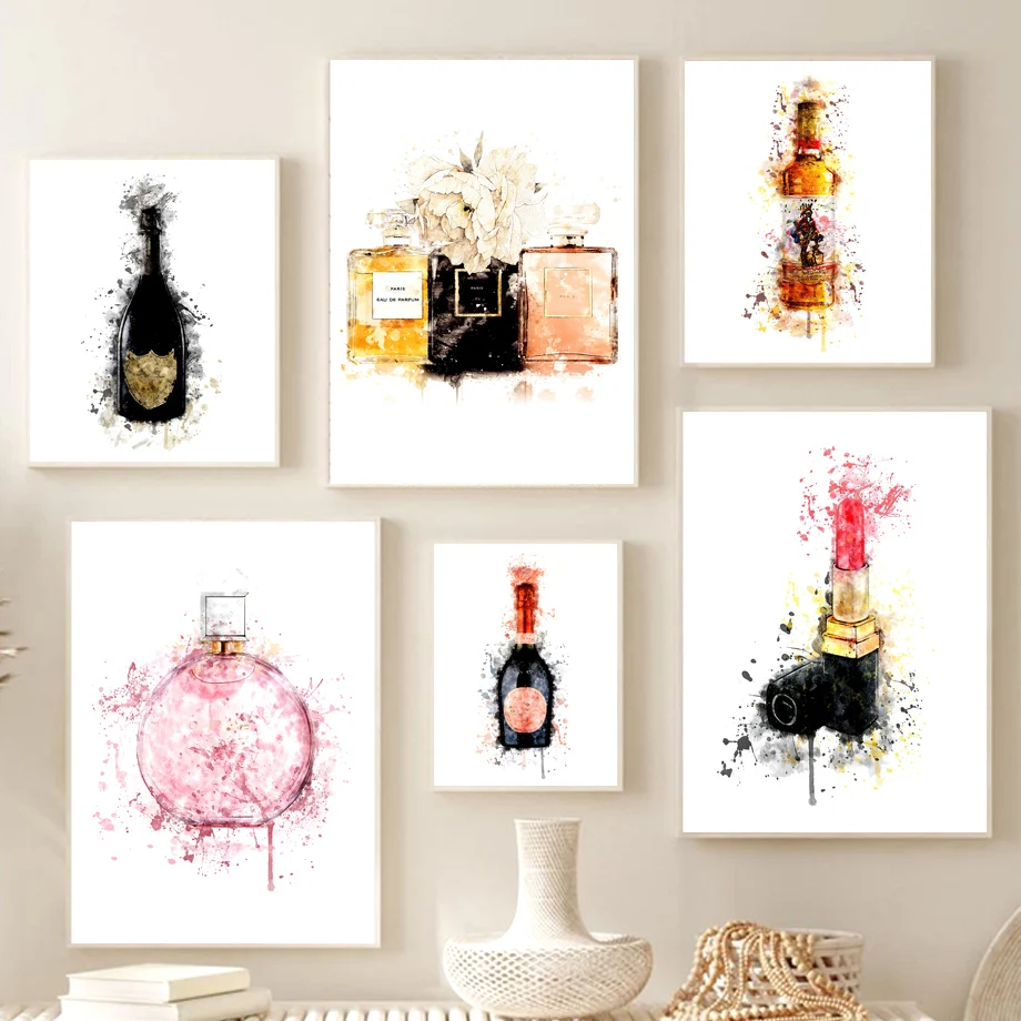 Цветок парфюм шампанское помада каблук модный макияж Искусство Холс...