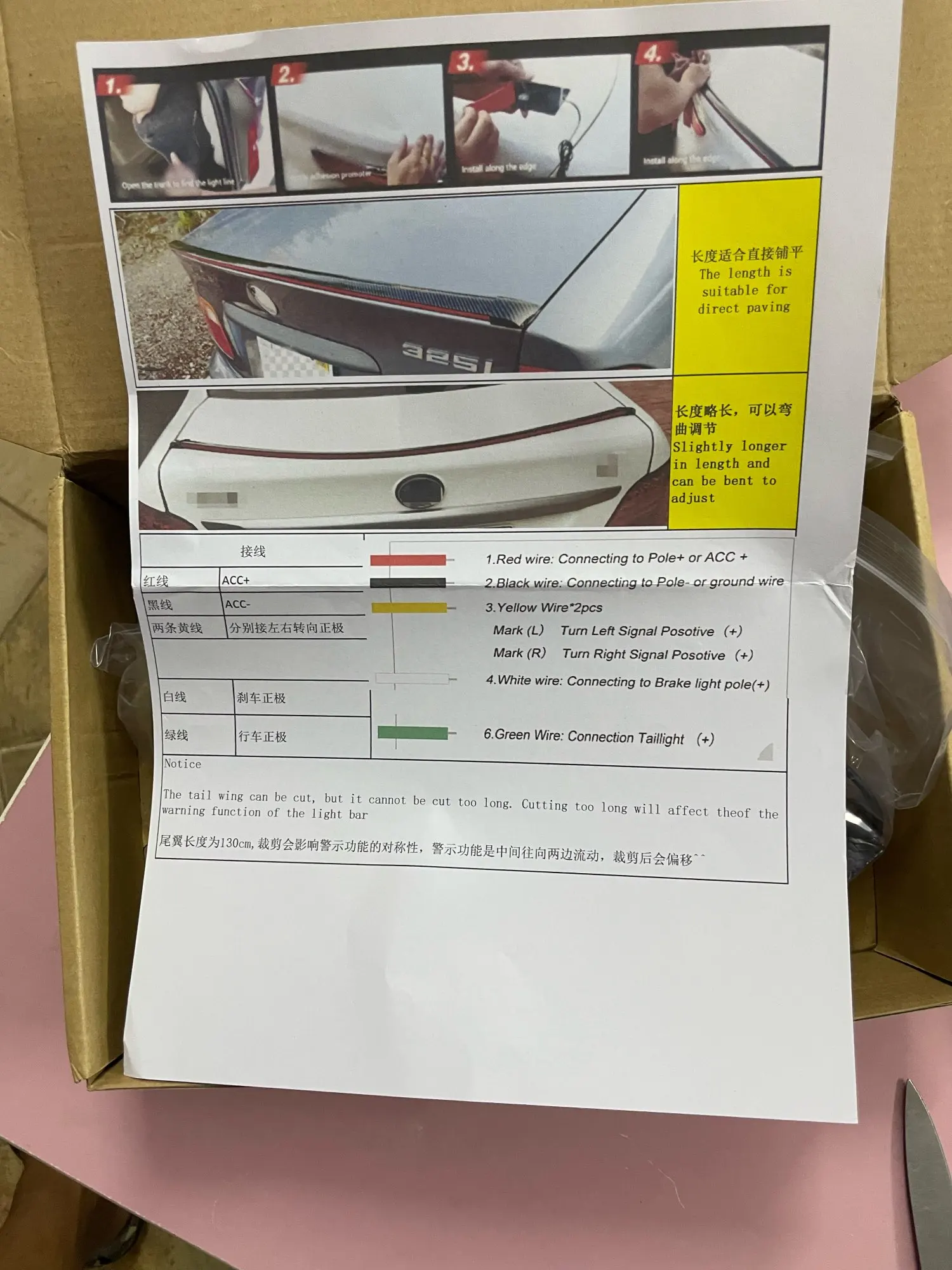 1. Классный внешний вид, сделайте ваш автомобиль уникальным.2. Может использоваться в качестве гоночного крыла, заднего спойлера, стоп-сигнала высокого положения.3. Можно отрезать в соответствии с вашими потребностями.4. Интеллектуальный декодер может быть напрямую подключен и использован, и работа более стабильна.5. Светодиодные фонари могут использоваться в качестве автомобильных сигнальных огней, но также повышают эстетику хвоста автомобиля.6. Простота установки, водонепроницаемость IP68, длительный срок службы.
