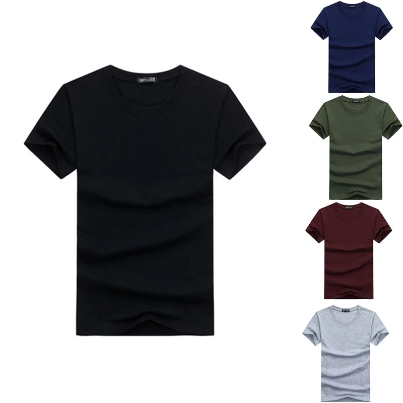 Мужская Летняя однотонная Приталенная футболка с коротким рукавом и вырезом лодочкой, повседневный базовый пуловер, топы из хлопка, спортивная одежда для тренировок