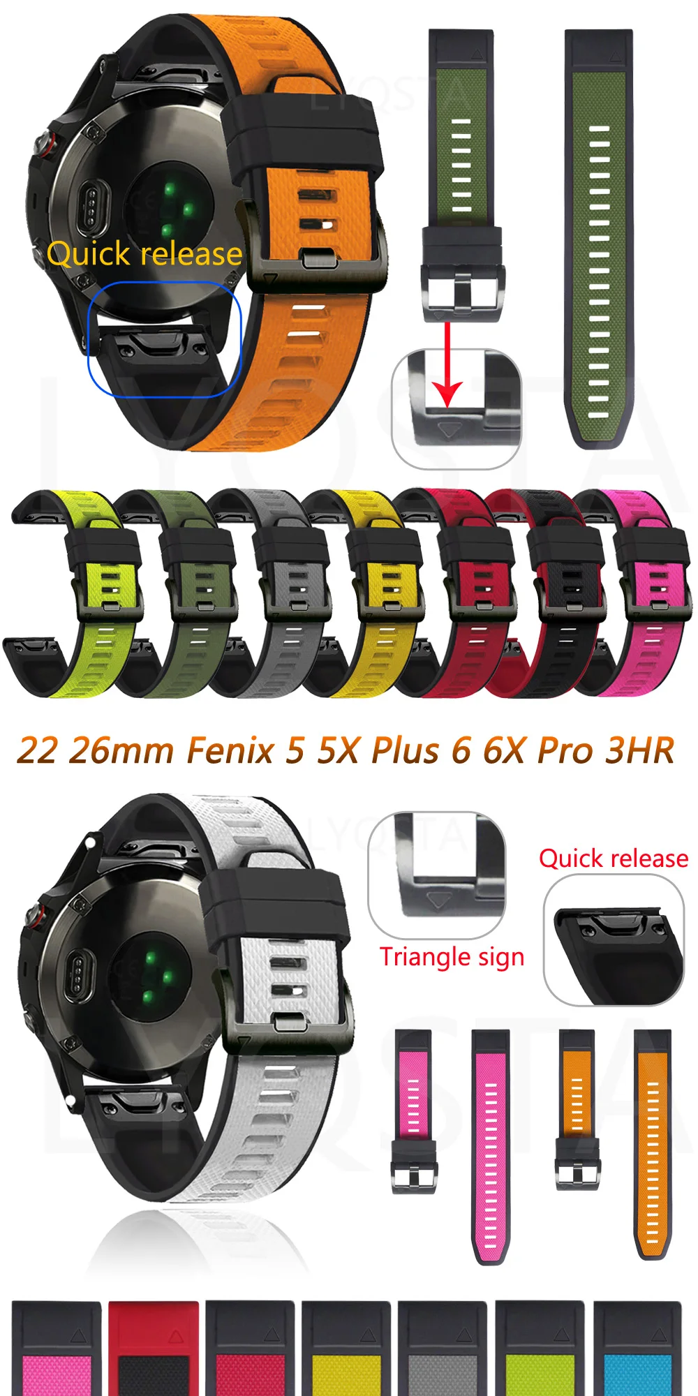 Спортивный силиконовый ремешок для часов 26 22 мм, ремешок на запястье для Garmin Fenix 6X 6 Pro 5X 5 Plus 3 3HR 935, легко устанавливающийся быстросъемный wirstband