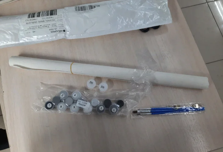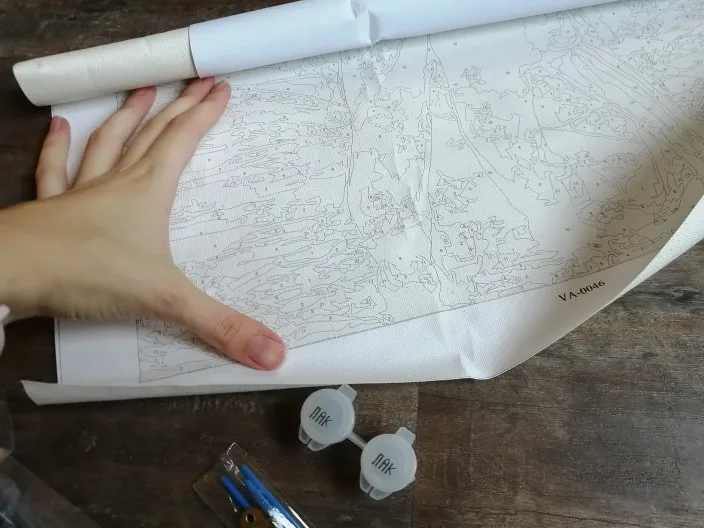 Картина пришла быстро, доставка домой курьером. Холст немного помялся, но надеюсь, что расправится. В комплекте холст, краска, лак, кисточки и крепления. Детализация хорошая, раскрашивать будет интересно, но не слишком сложно