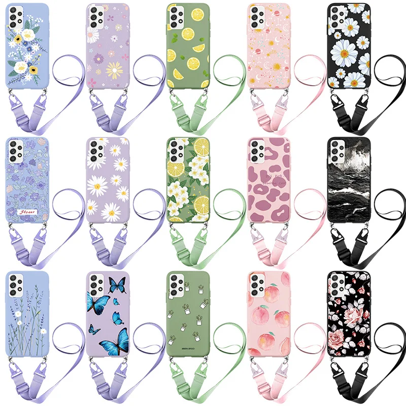 Милый чехол из ТПУ для Samsung Galaxy A52 A52S, чехол для телефона, ожерелье, ремешок через плечо, шнур, цепь, Бампер для Samsung A32, сумка