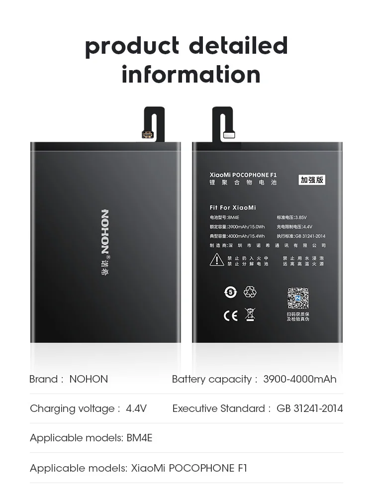 Аккумулятор NOHON для Xiaomi POCOPHONE F1, Redmi Note, BP41, BM4E, ...