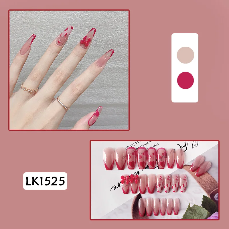 24 шт.компл. накладные ногти в форме сердца и бабочки с клейким слоем, накладные ногти с полным покрытием, инструмент для маникюра и нейл-арта своими руками