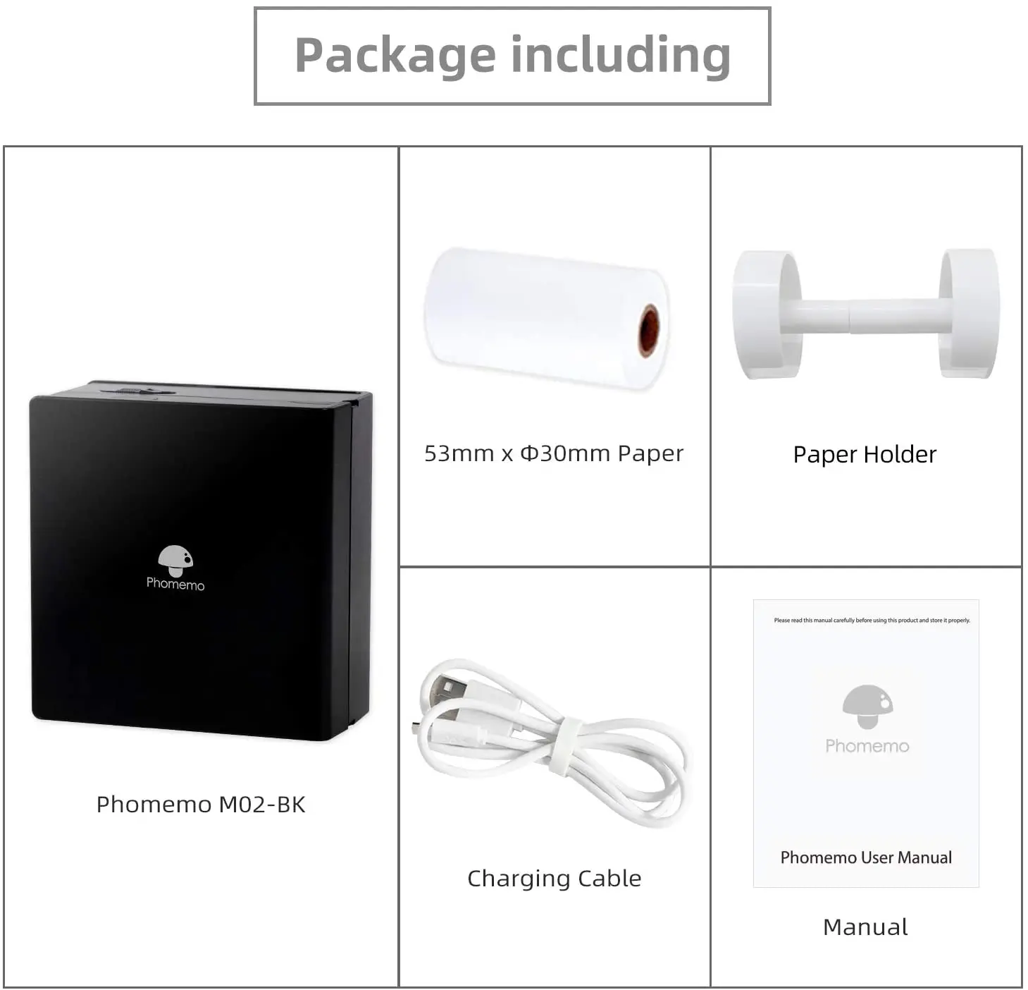 Термопринтер Phomemo M02, портативный, совместимый с Bluetooth, 203 точекдюйм