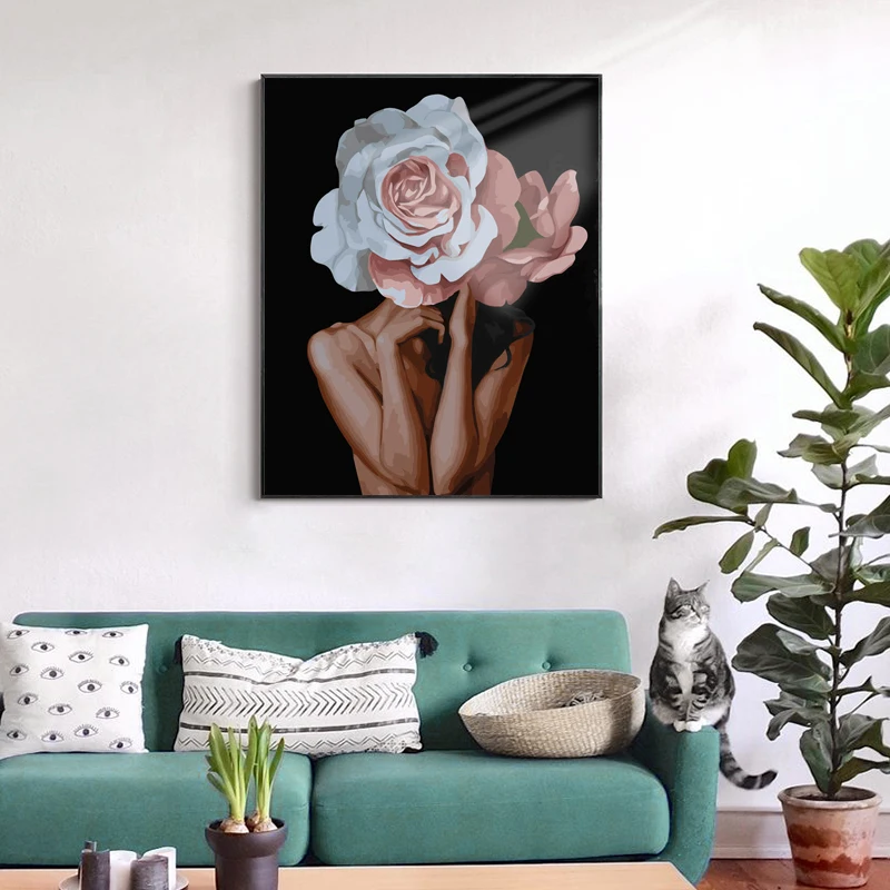 VA-2533 картина маслом по номерам, цветы и женщины, DIY Краска по н...