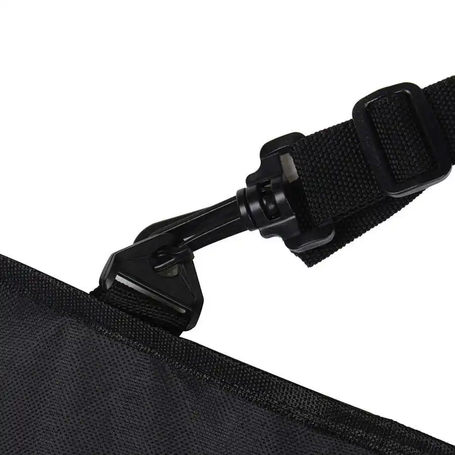 Оснащен регулируемыми застежками-пряжками, которые фиксируют вокруг головы стойки спереди и сзади гамак