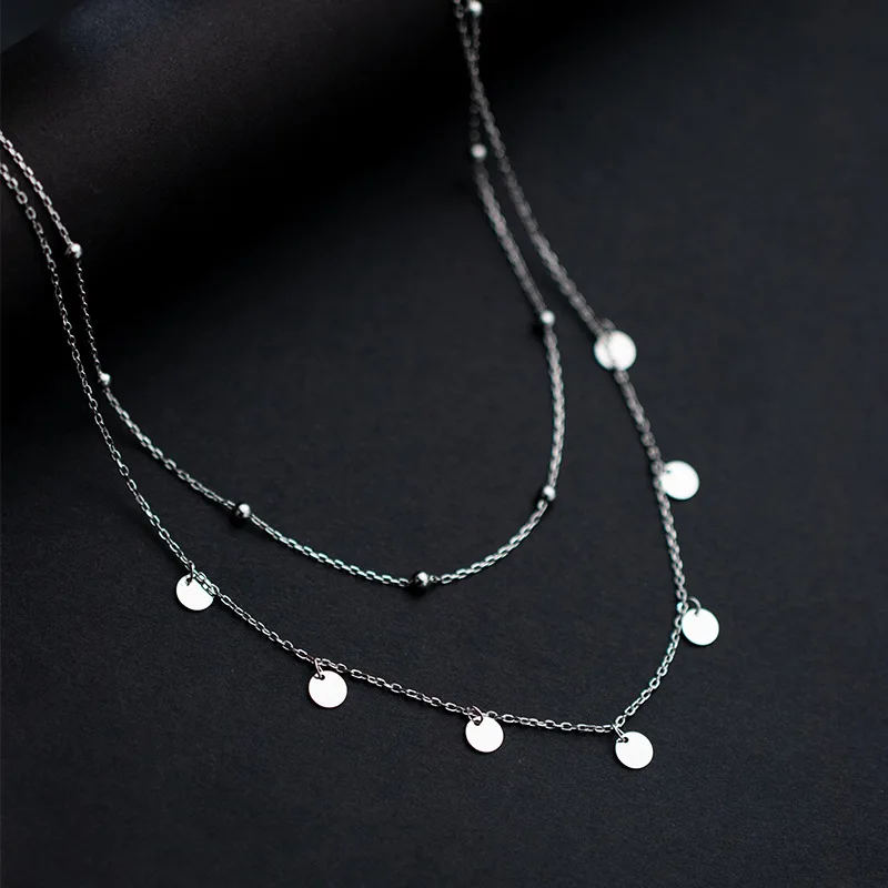 Ожерелье женское Двухслойное из серебра 925 пробы с дисковыми бусинами