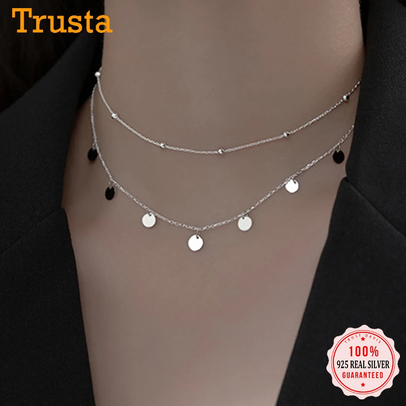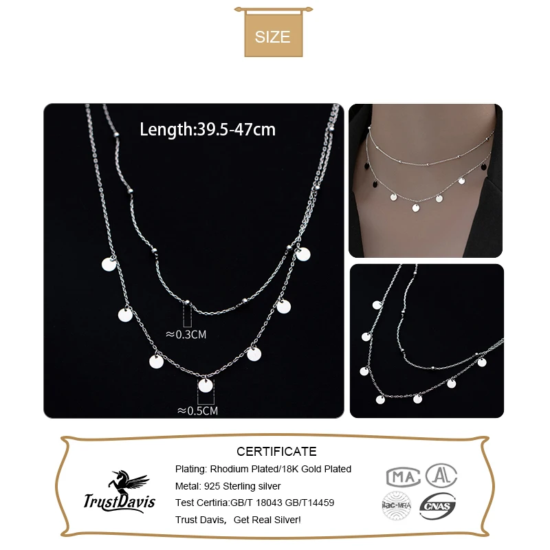 TrustDavis Настоящее серебро 925 пробы, модное двухуровневое ожерел...