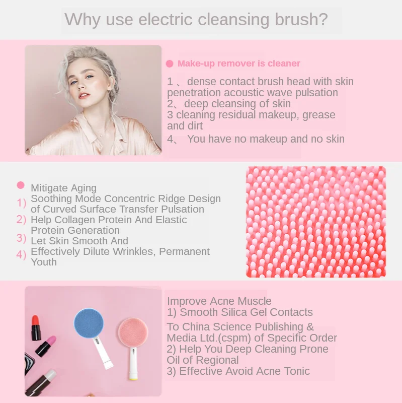 Силиконовая щетка для чистки лица, совместима с электрической зубно...