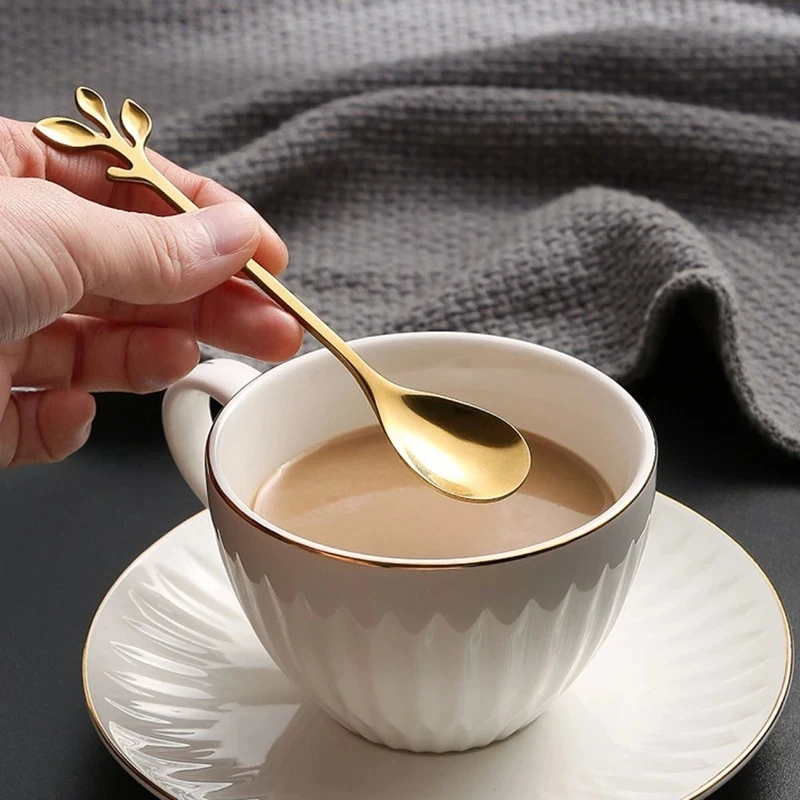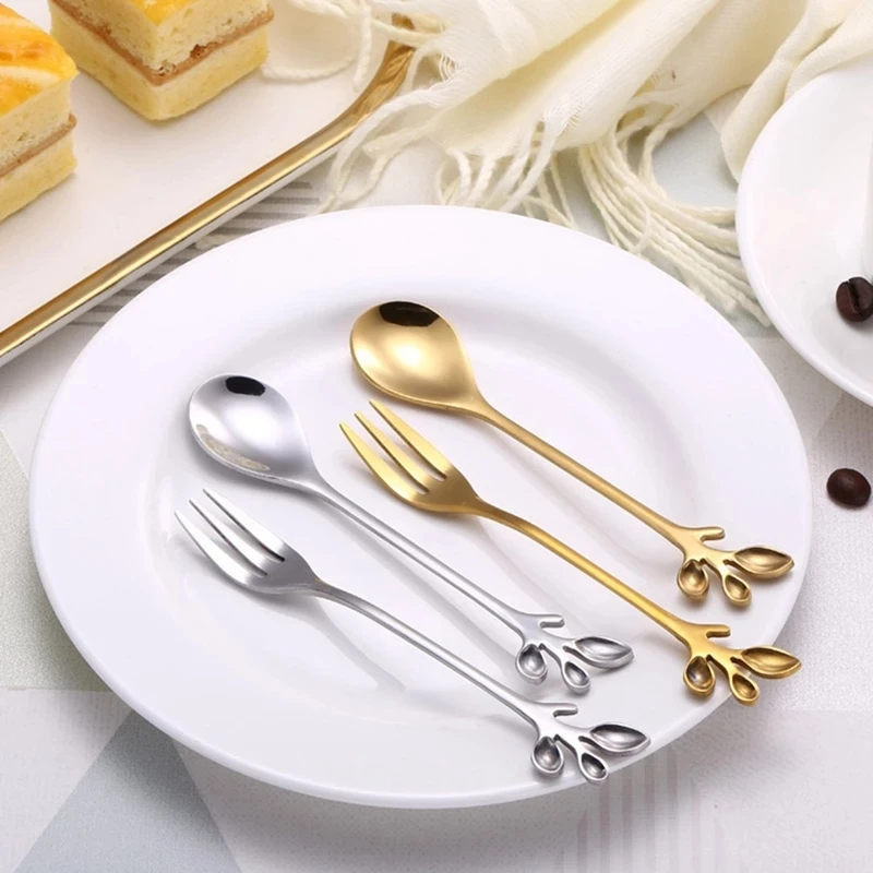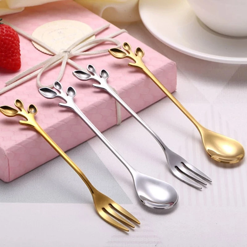 Домашняя ветка из нержавеющей стали ложки в виде листьев вилка, кофейная ложка рождественские подарки кухонные принадлежности десертная посуда для мороженого