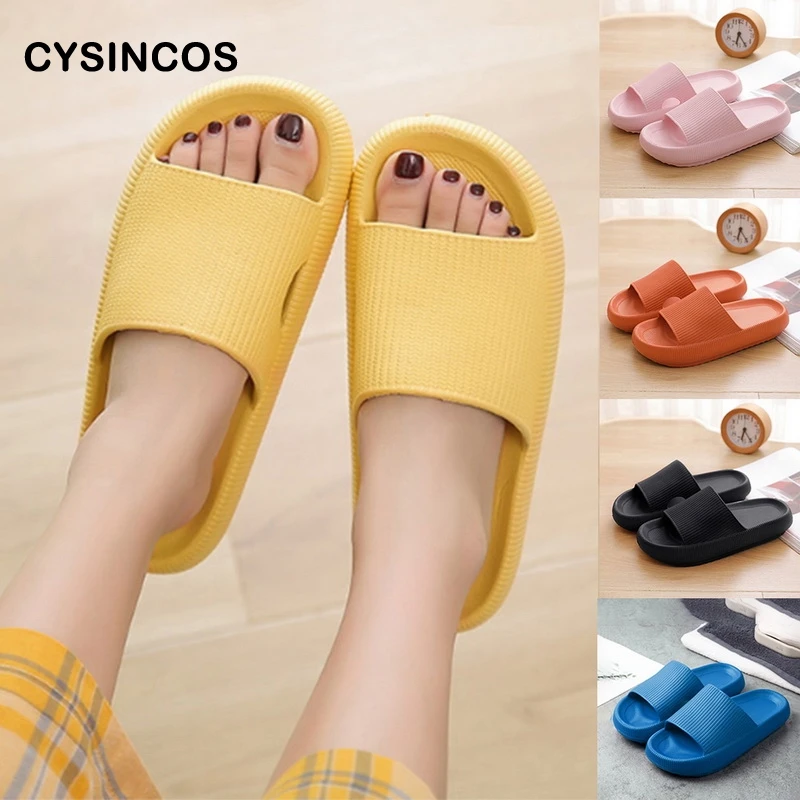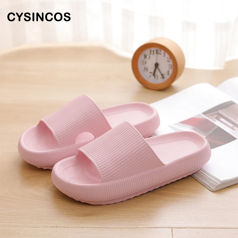 Женские домашние тапочки CYSINCOS на толстой подошве 4,5 см, Дамская обувь на плоской платформе, Нескользящие комнатные тапочки из ЭВА для гостиной