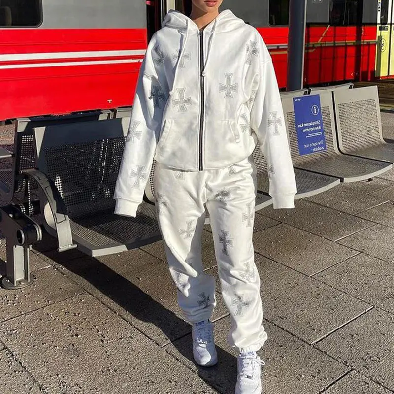 Женские толстовки Стразы с перекрестным принтом, уличная одежда на осень и зиму, толстовка с длинным рукавом на молнии, Повседневная Свободная куртка с капюшоном Y2k