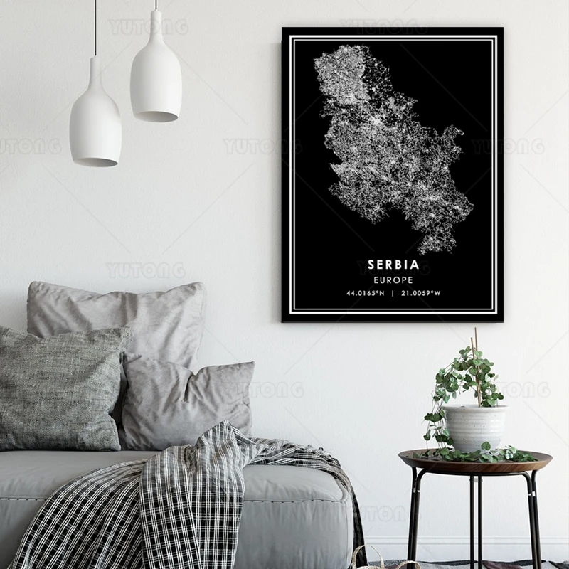 Картины на холсте с изображением Сербии, плакат-карта, настенные художественные принты, домашний интерьер, декор для комнаты