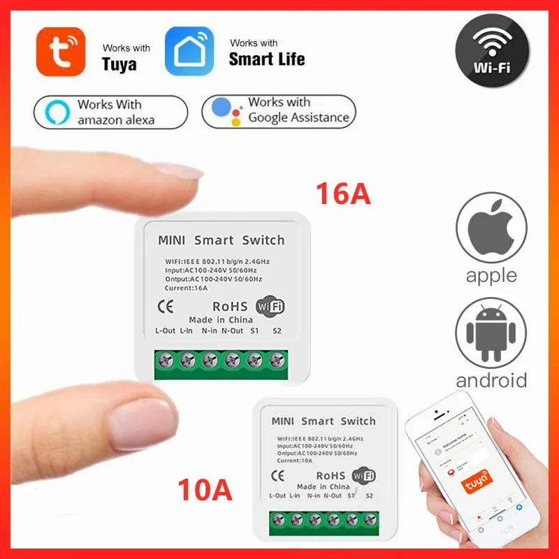 Умный мини-переключатель Tuya, Wi-Fi, светодиодный светильник, таймер, беспроводные переключатели, приложение Smart Life, работает с Alexa, Google, товары для дома