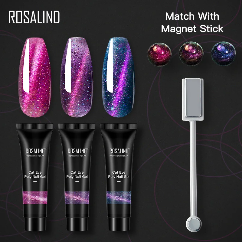 Полигель для ногтей ROSALIND, 15 мл, кошачий глаз, 3 модных цвета, быстрое наращивание, макияж, косметика, УФ