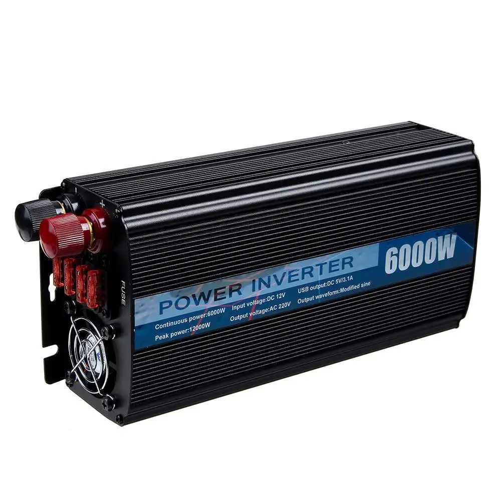 12000 Вт пиковые Автомобильные инверторы, модифицированные синусоидальные солнечные батареи, от 12 В до 220 В переменного тока, трансформатор напряжения, адаптер, зарядный преобразователь и кабель