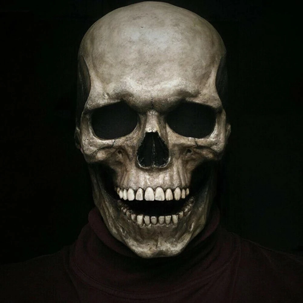 Маска с черепом на всю голову, маска со скелетом, костюм на Хэллоуин, ужасная маска от зла, шлем с подвижными челюстями, искусственное украшение