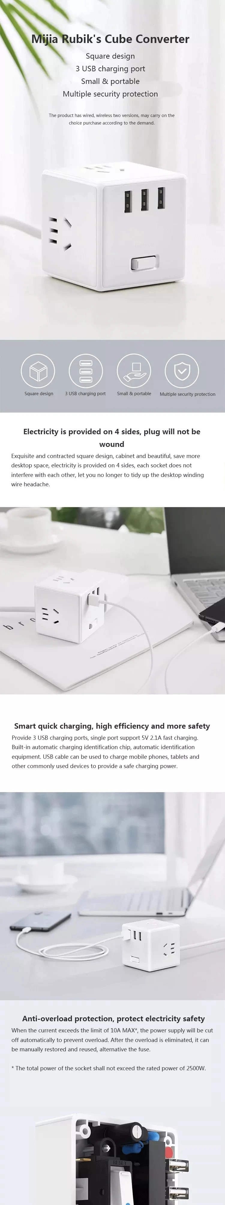 Розетка Xiaomi Magic Cube, многофункциональное зарядное устройство USB, адаптер питания, 6 портов, розетка-конвертер, компактная розетка