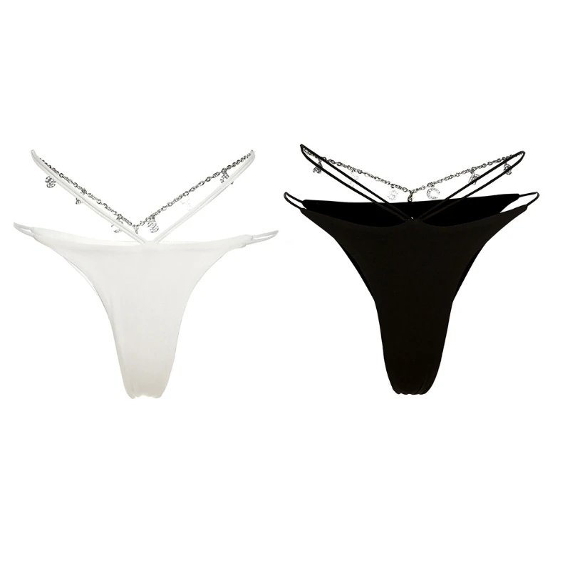 Женские пикантные трусики с низкой посадкой, стринги в стиле Харадзюку, стразы с надписью, подвеска на цепочке, трусы на бретелях, нижнее белье, ювелирное белье