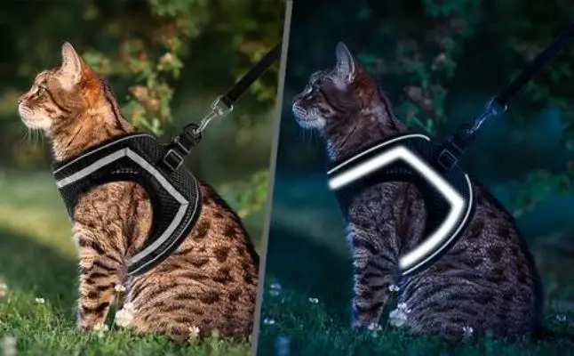 [Безопасный и лучший контроль] наша шлейка для кошек имеет светоотражающие полосы, отражающие окружающий светильник при крайне слабосветильник щении, обеспечивая максимальную видимость при ночных бегах; уличная шлейка для котят имеет прочное кольцо с D-образным кольцом на задней стойке на ремне.