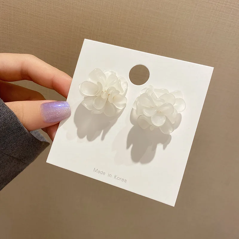 Трехмерные серьги в виде белых цветов, женские серьги-гвоздики в новом стиле, серьги в виде лепестков