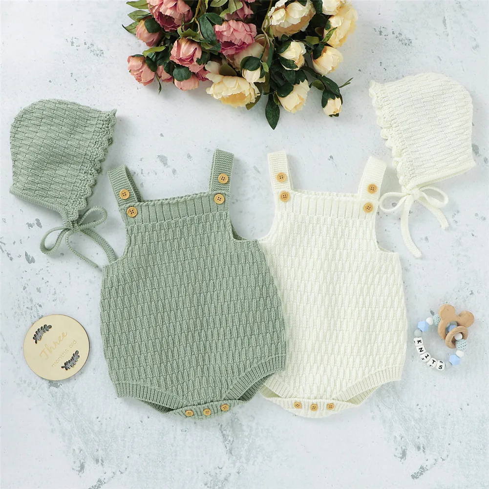 Комбинезон детский трикотажный, хлопковый, с треугольной промежностью и шапочкой, 2 шт.