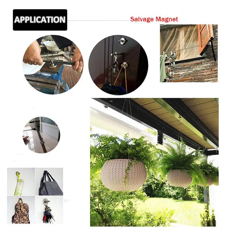 Чашка с лучшим покрытием обеспечивает защиту магнита и предотвращает сколы или трещины. Удобно организовывать инструменты, спортивное снаряжение, кухонную утварь, ключи, садовую технику, кабели и провода, календари и многое другое.Основные характеристикиСверхмощное натяжениеЭтот рыболовный магнит оснащен сильным неодимовым магнитом для его основания. Может предложить разныеИдеальный Магнитный рыболовный инструментРыболовный магнит идеально подходит для магнитной рыбалки, охоты за сокровищами, спасения под водой, а также для поиска чего-то старого и загадочного. Используйте рыболовные магниты, чтобы найти недостающие металлические детали в вашей мастерской или домашнем дворе.Супер сила для охоты за сокровищамиИзготовлен из редкоземельных неодимовых магнитов, а лучшее никелевое покрытие может помочь магниту не повредить и не ржаветь. Если вы поклонник охоты за сокровищами, рыболовный магнит-ваш лучший выбор.Универсальные крючкиЕго можно использовать в помещении/на улице, на кухне, в ванной, спальне, гараже, шкафчиках, офисе, холодильнике или даже во время круиза! Без дрели. Без отверстий. Без беспорядка!МногофункциональныйВы также можете повесить полотенца, молотки, кисти, шнуры питания, метлы, кронштейны, головные уборы, пальто, фартуки, сумки и практически все, что вы можете придумать, держите ваш дом в порядке и порядке.ПримечаниеИз-за ручных измерений допускается небольшая погрешность в измерениях.Не позволяет детям и кардиостимуляторам прикасаться к магнитным крючкам.Держитесь подальше от магнитных накопителей, таких как мобильные телефоны, банковские карты и компьютеры.Пожалуйста, будьте осторожны в случае, если мощный магнит повредит ваши пальцы.Пожалуйста, носите перчатки, когда разбираетесь с ними. Лучше защитить пальцы.Если Магнитные Крючки повреждены, пожалуйста, вытащите их в ближайшее время, потому что мусор может вызвать ласточку или повредить случайность.