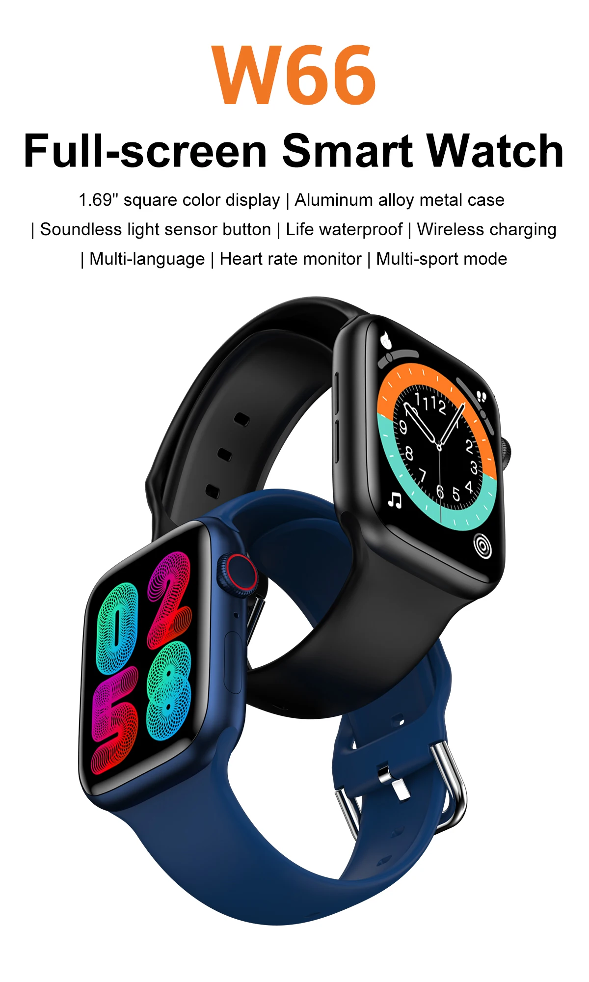 Умные часы W66, 2021, Bluetooth Вызов, настраиваемый циферблат IWO W66, умные часы для мужчин и женщин, IP67, водонепроницаемые, 280 мАч, IP67, PK HW12 HW22