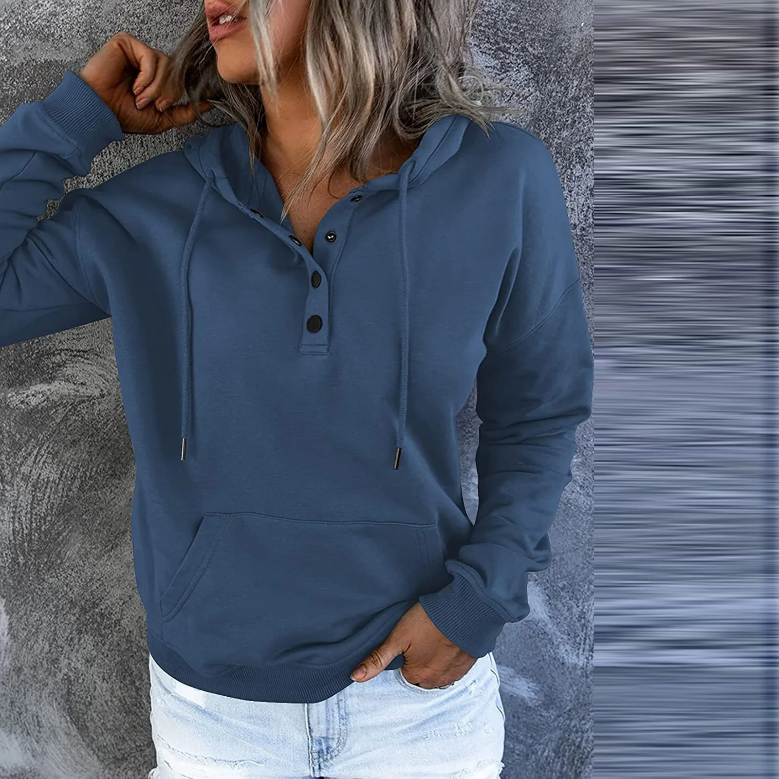 Hoddie для женщин пуловер толстовки Топы повседневные пуговицы Длинные рукава карманы толстовки Harajuku Толстовка Женская 2021