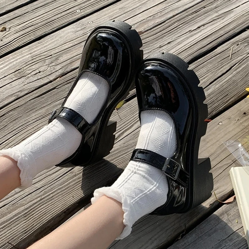 Туфли Rimocy женские в японском стиле Лолита, винтажные мягкие туфли на платформе и высоком каблуке, лакированная кожа, ремешок на щиколотке, Туфли Мэри Джейн, черные