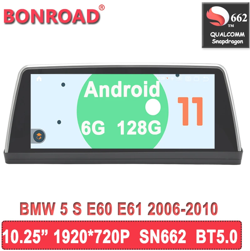 Автомагнитола Bonroad с вертикальным экраном 10,25 дюйма, Snapdragon662, Android, мультимедийный плеер для BMW 5 серии E60E61, CCCCIC, GPS, BT5