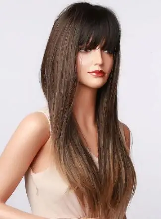 Длинные прямые синтетические волосы ALAN EATON, парики для женщин с эффектом омбре, черные, темно-коричневые, для косплея, для повседневвечерние, термостойкие парики с челкой