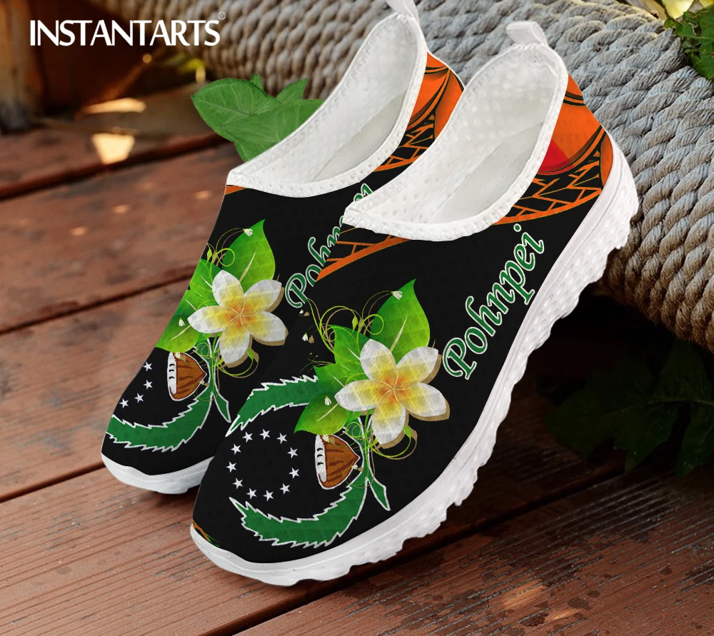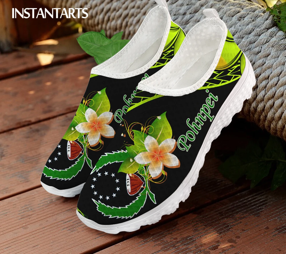 Женские туфли INSTANTARTS Pretty Pohnpei, полинезийская обувь с принтом Плюмерия, плоская подошва, легкие слипоны, сетчатые кроссовки, летние пляжные лоферы