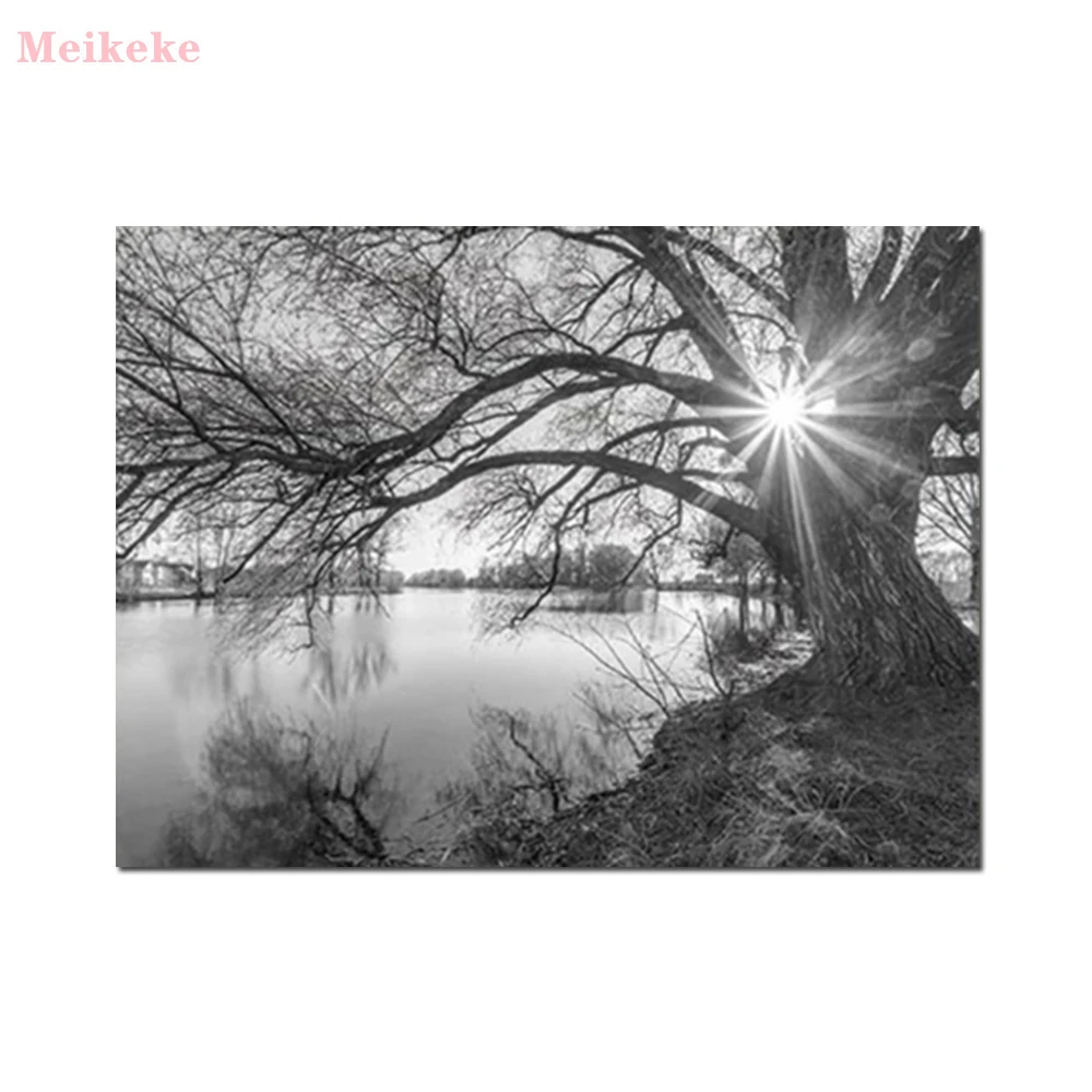 Полностью квадратные круглые стразы 5D Diy алмазная живопись черный белый закат Дерево Вышивка крестом наборы шаблон вышитые наклейки