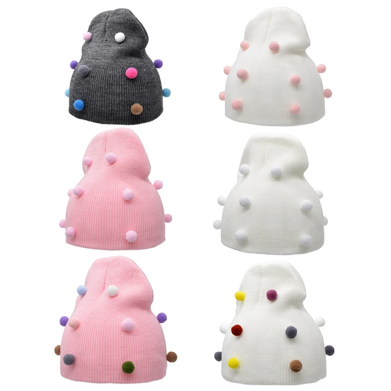 Мягкая вязаная шапка для малышей, шапка с цветным помпоном, декорат...