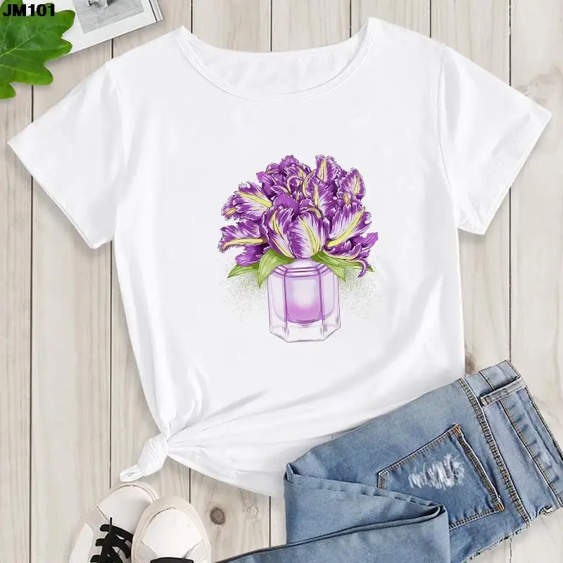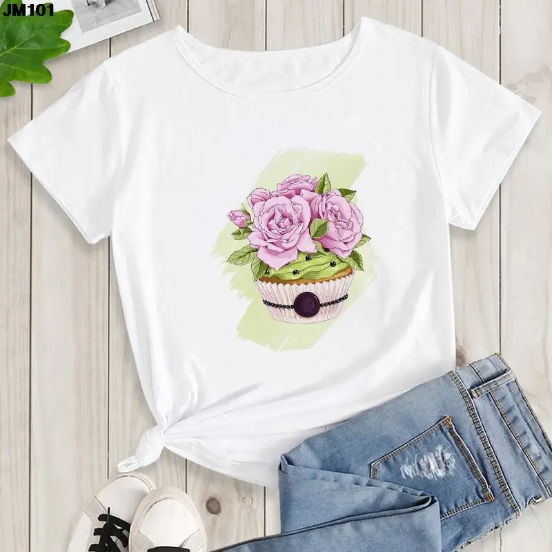 Женская футболка с цветочным принтом, летняя белая футболка с коротким рукавом, в стиле Харадзюку