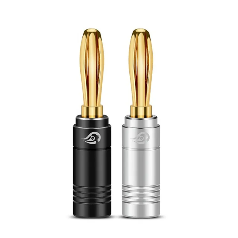 Позолоченный разъем типа банан, штекер для динамика, разъемы банан, аудиоадаптер для усилителя, винт в алюминиевом корпусе, черный, серебристый