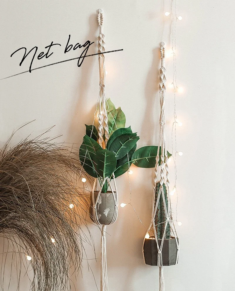 Хлопчатобумажная Сетчатая Сумка, домашний винтажный декор, Настенная подвесная корзина для растений, Декоративная вешалка для горшка, магазина гостиной