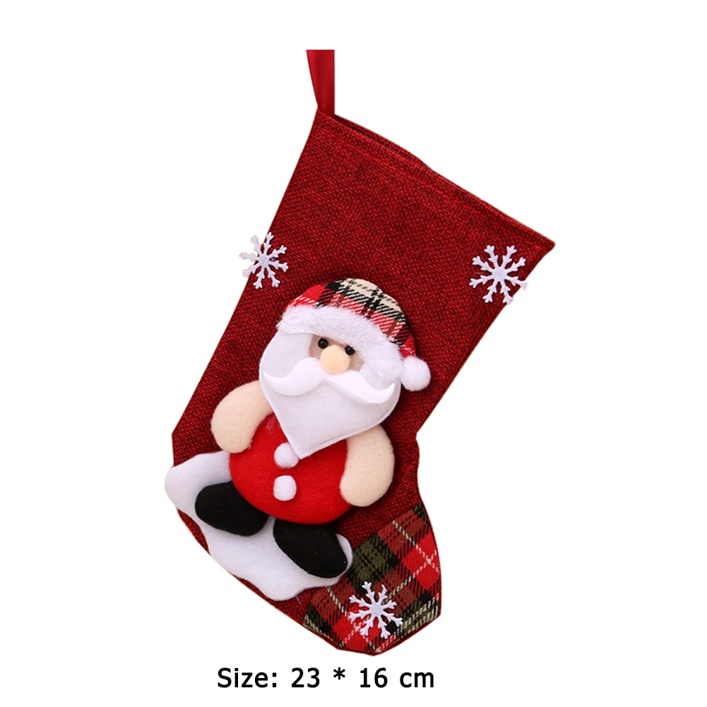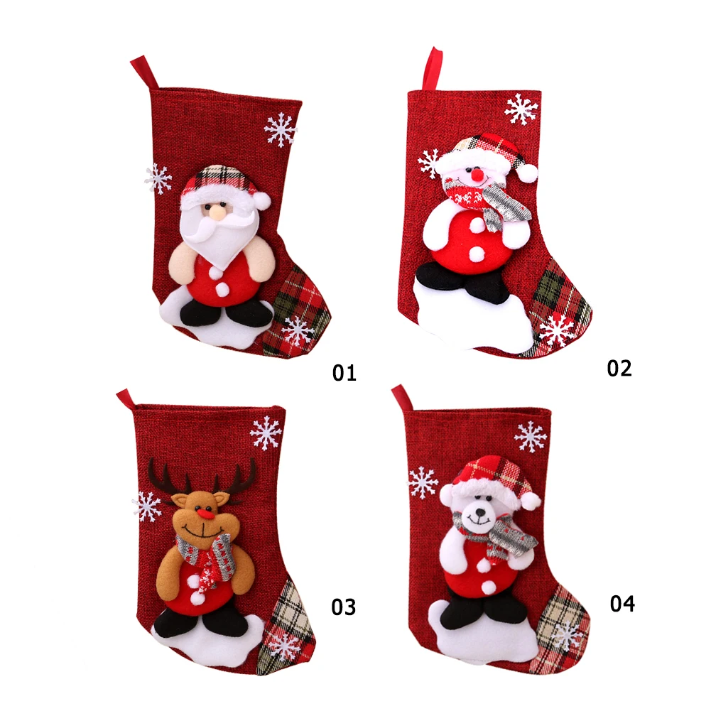 Маленькие льняные рождественские носки, украшения в виде Санта-Клау...