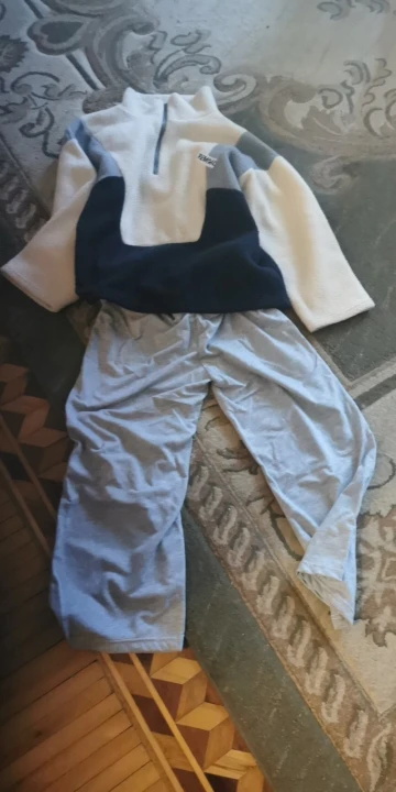 Вязаный свитер-кардиган, белая футболка с длинным рукавом и серая п...