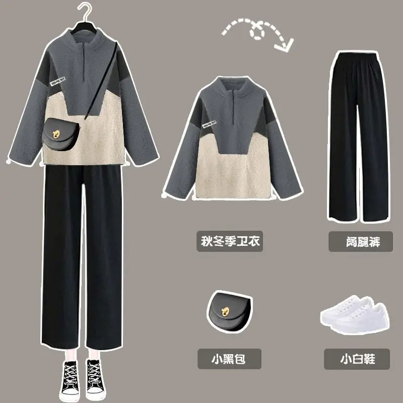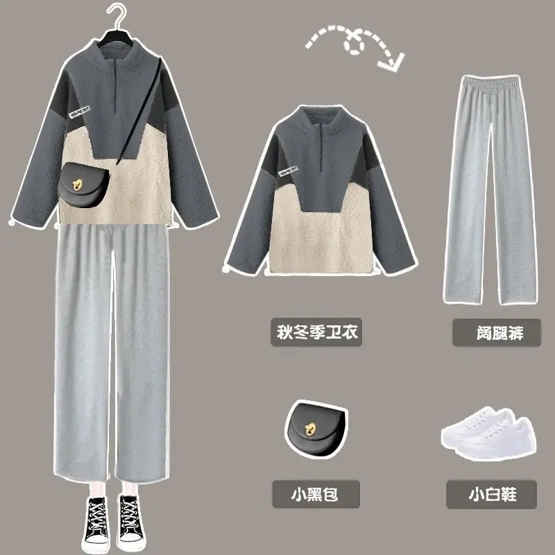 Свитшот с широкими штанинами для женщин, костюм в стиле преппи для ...